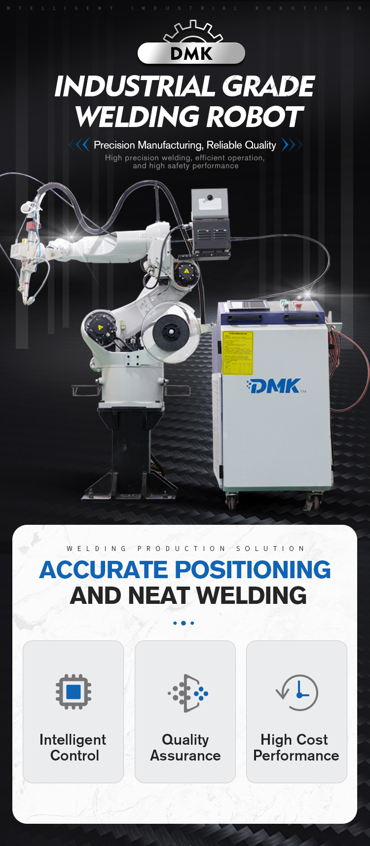 The DMK 3000W 6-Axis Industrial Robot Arm Laser Welding Machine is an automated solution designed specifically for high-precision metal welding. Its core advantages lie in the high flexibility of its 6-axis robotic arm and the robust stability of its laser system. The robotic arm features six kinematic joints (rotating S-axis, lower arm L-axis, upper arm U-axis), enabling precise end-user motion with six degrees of freedom. Combined with a 360° oscillating welding head, it easily handles the multi-angle welding demands of complex and irregular workpieces such as cabinets, kitchen and bathroom fixtures, and elevator guardrails.
