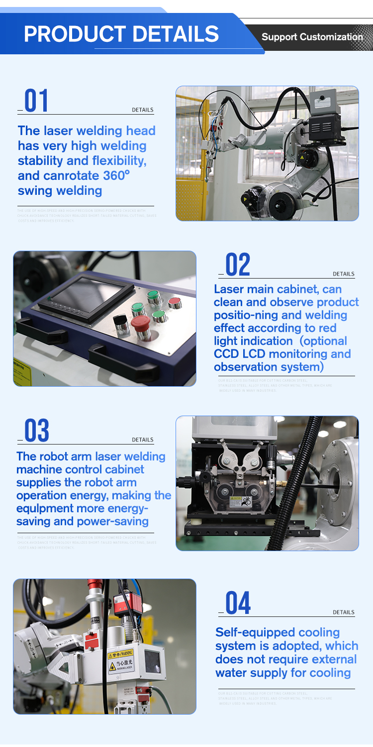 Offering exceptional practicality and safety, the device features a built-in 5P cooling system, eliminating the need for an external water source and maintaining temperature control accuracy of less than 1°C, ensuring long-term stable operation. Supporting 24/7 continuous operation, it boasts production efficiency far exceeding that of manual welding and can replace manual labor in hazardous environments, reducing operational risks. Operating with a CNC 2000 English control system, the device features a simple interface and minimal skill requirements. Compatible with a variety of metals, including stainless steel, carbon steel, aluminum, and copper, it is an ideal choice for improving welding efficiency and quality in the metalworking industry.