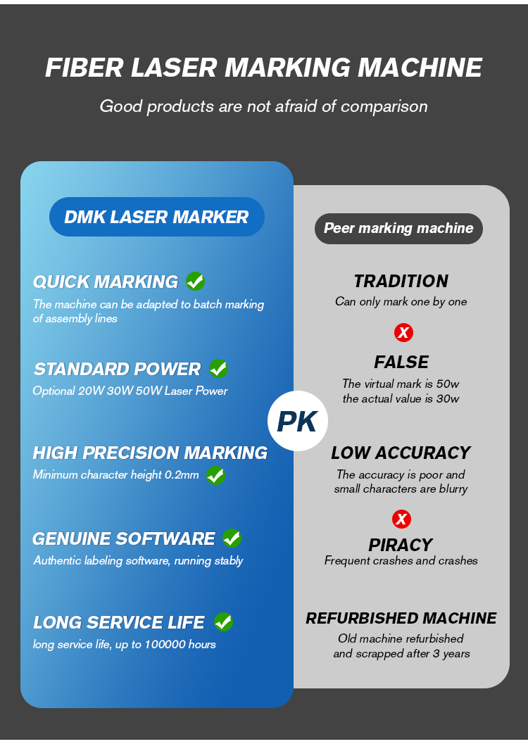 Second, it is compatible with a wide range of materials and can achieve permanent marking on metals such as stainless steel, aluminum, and copper, as well as non-metallic surfaces such as ABS, PVC, and acrylic. The marking effect is wear-resistant and corrosion-resistant, far exceeding that of inkjet printing.