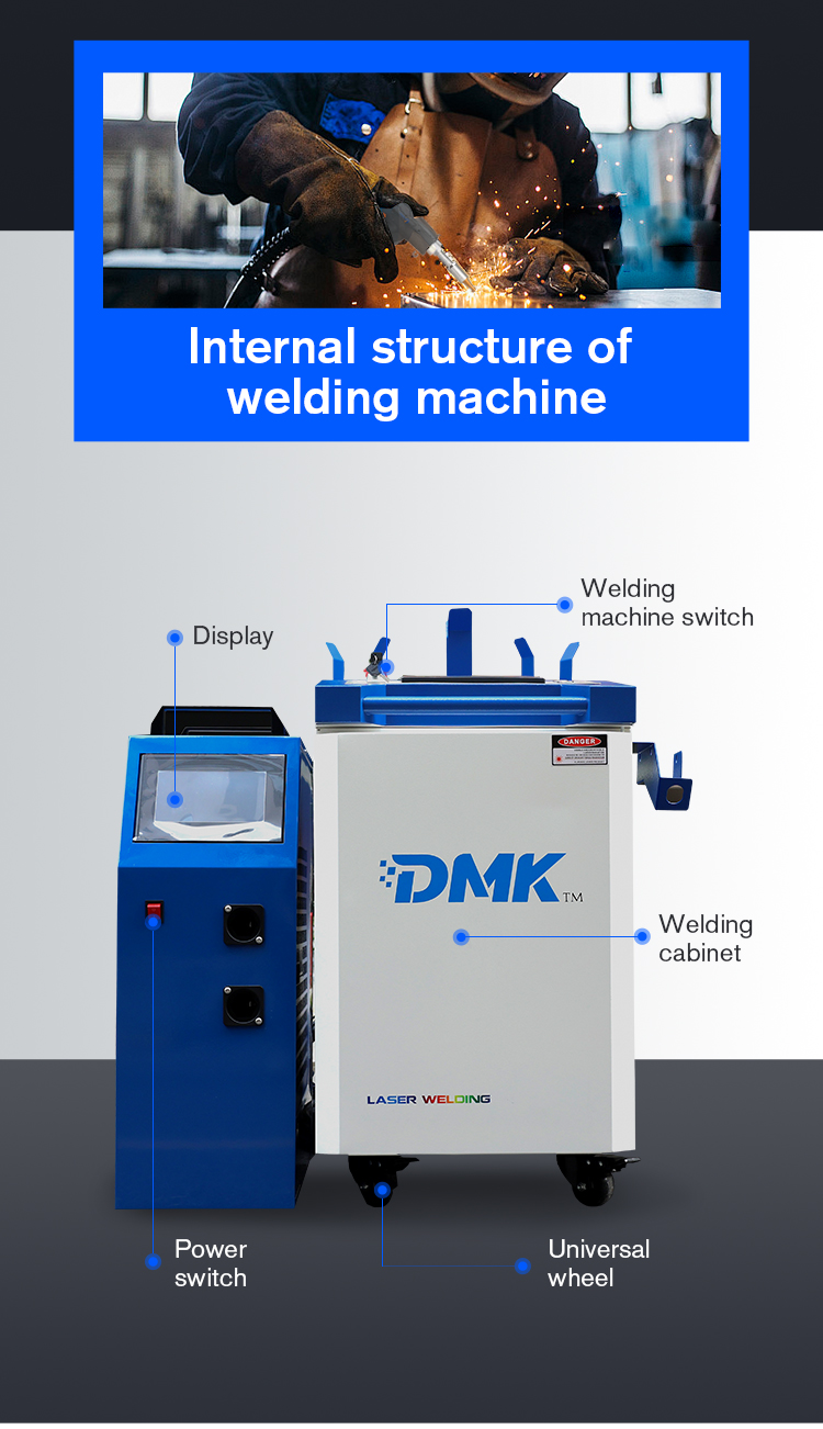 The MINI Handheld Fiber Laser Welding Machine is a highly portable, versatile welding device from DMK. Its core strengths lie in its integrated design and adaptability to multiple scenarios. The device integrates a laser generator, cooling water tank, and control system. Weighing only 120 kg and equipped with built-in wheels, it can be flexibly moved anywhere in the workshop or on outdoor construction sites. It requires minimal space and can be used simply by plugging in, significantly enhancing operational flexibility.