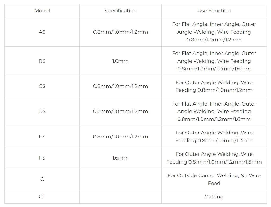 Includes: Nozzle and welding tips