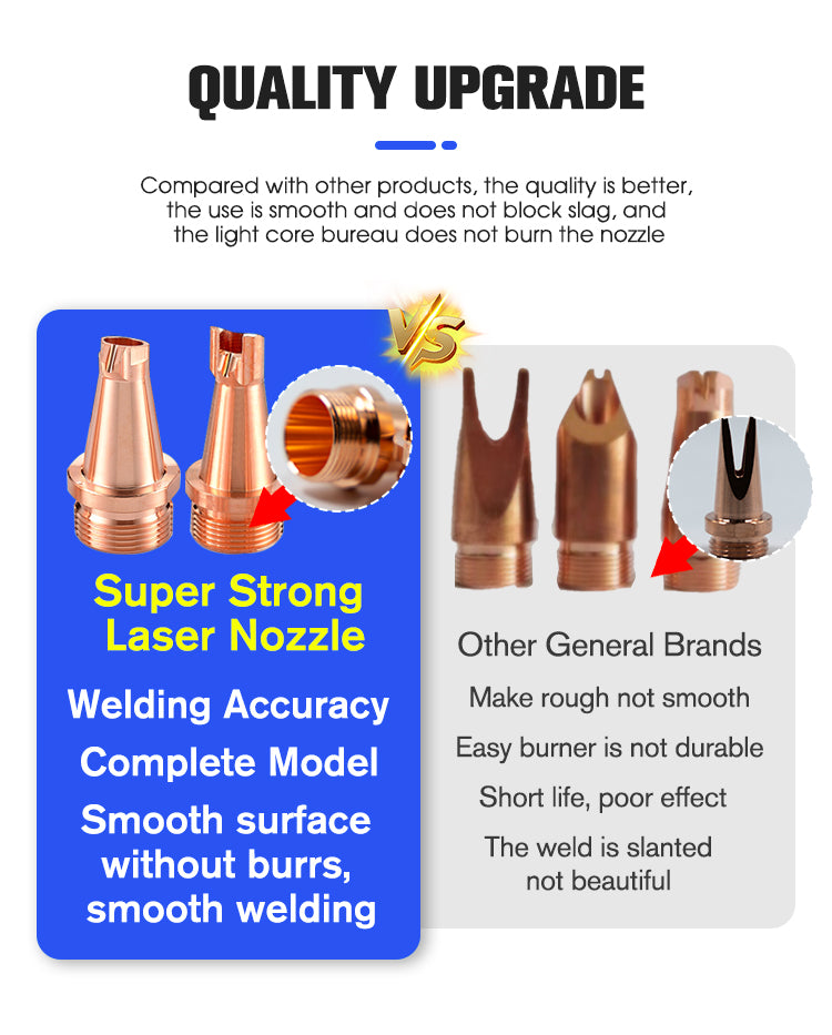 The CHAOQIANG WEIYE Fiber Laser Welding Nozzle is crafted from durable stainless steel, designed to deliver exceptional precision and efficiency. Whether you're using the SUP20S, HW960, HW970,BW101-GS, or Xinghong fiber laser handheld welding heads, this nozzle provides seamless compatibility and reliable performance, making it perfect for a range of welding tasks. Its precision-engineered design ensures smooth and accurate welds, boosting productivity in professional settings.