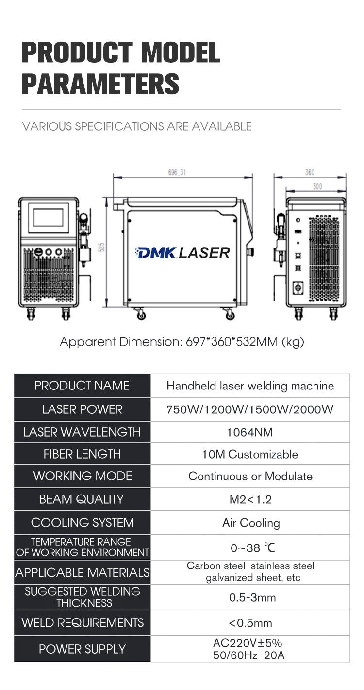 DMK Hand-held Laser Welder Lightweight Air-cooled Laser Welding Machine DMK Hand-held Laser Welder Lightweight Air-cooled Laser Welding Machine