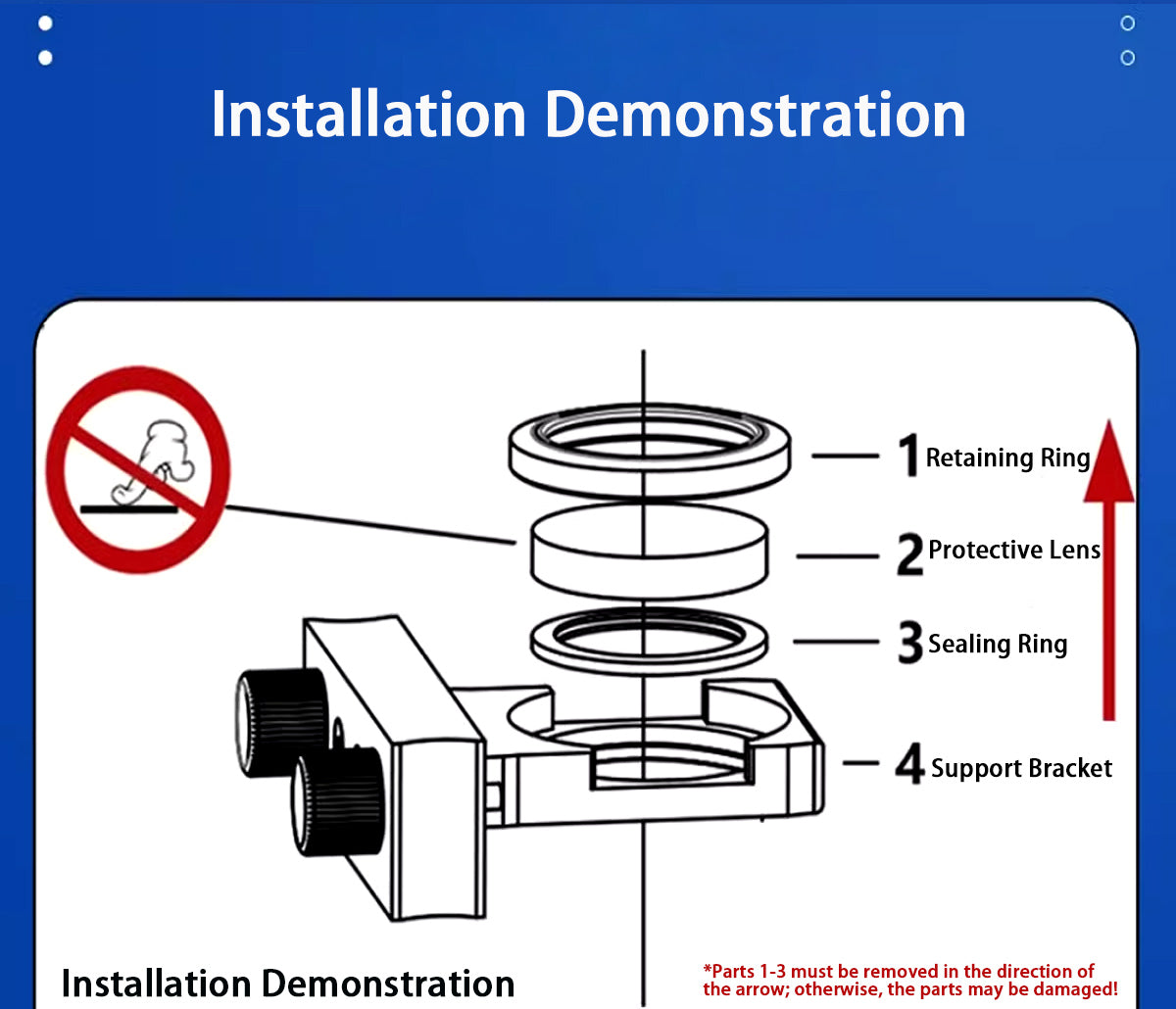 The lens features a 45° 0.5mm protective design, making it convenient to use and preventing hand injuries, thus enhancing safety. This design allows for a more user-friendly operation, suitable for various laser cutting needs.