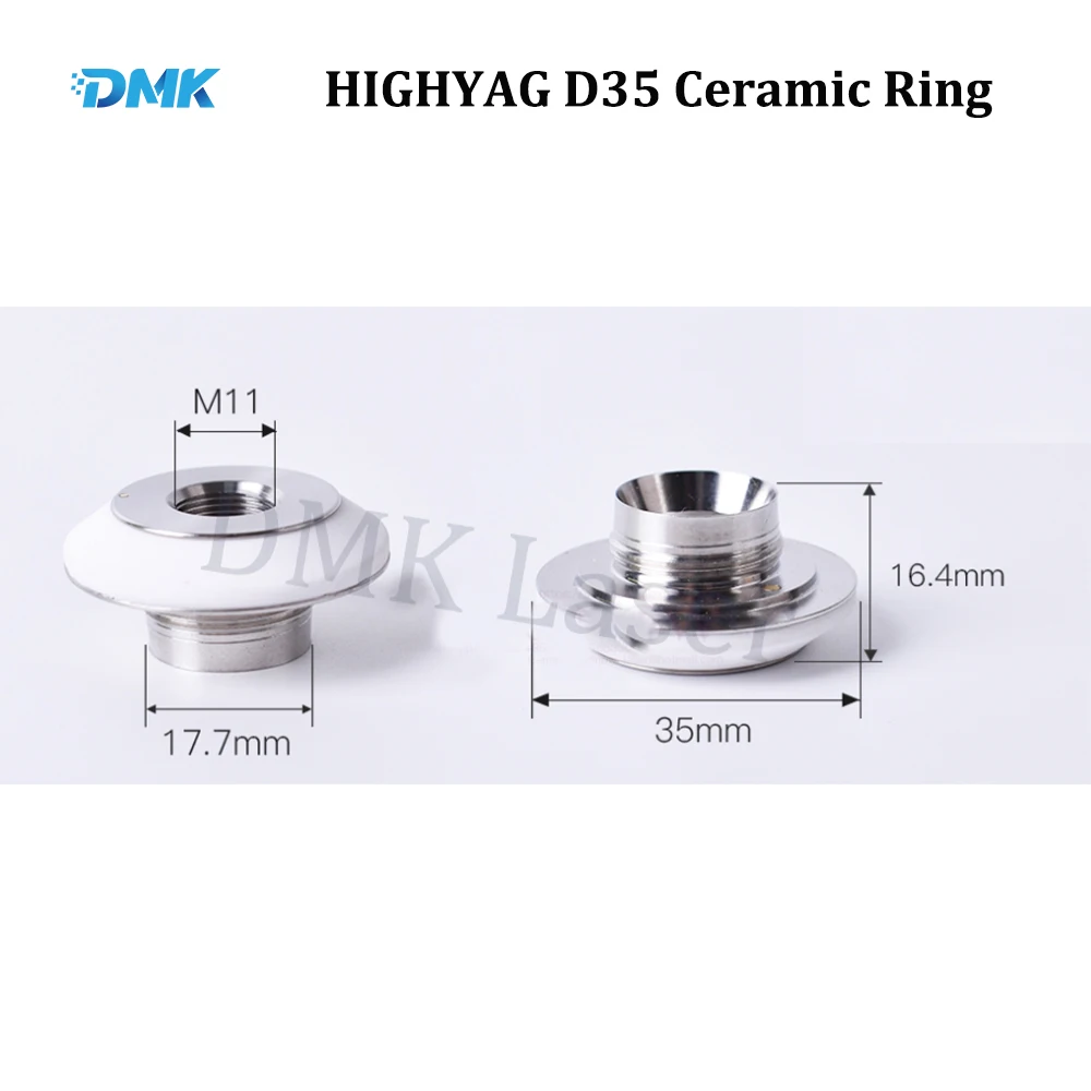 The HIGHYAG Laser Ceramic Ring D24.5/D35 combines advanced technology with superior craftsmanship. Made from premium alumina ceramic, this nozzle holder withstands the rigors of laser cutting, ensuring durability and consistent performance.